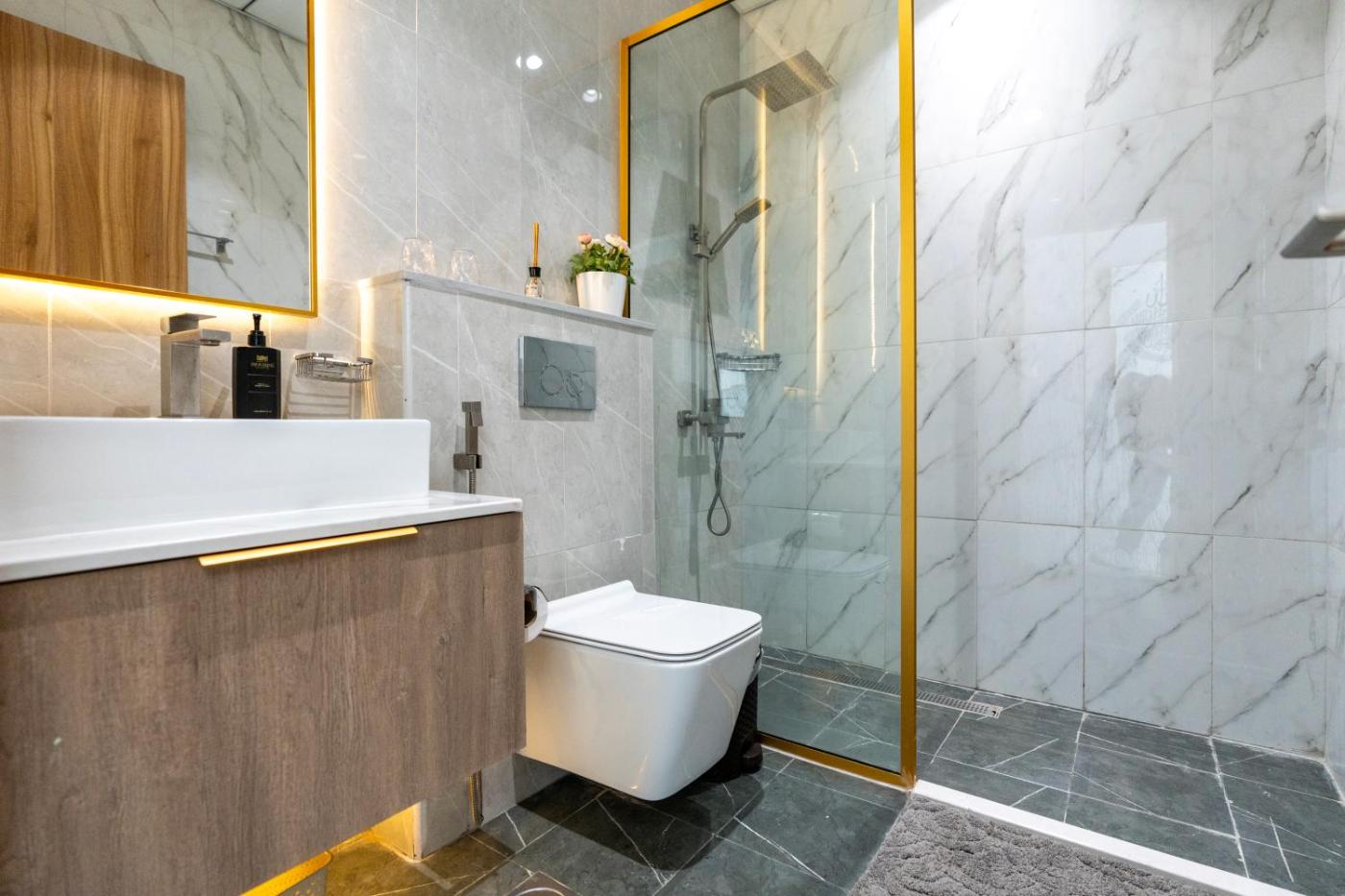 One-Bedroom Apartment. The spacious apartment has 1 bedroom and 1 bathroom with a shower and bathrobes. Meals can be prepared in the well-fitted kitchen, which features a stovetop, a refrigerator, an oven and a microwave. This air-conditioned apartment comes with a dining area, a flat-screen TV with streaming services a washing machine and a balcony. The unit has 1 bed.
