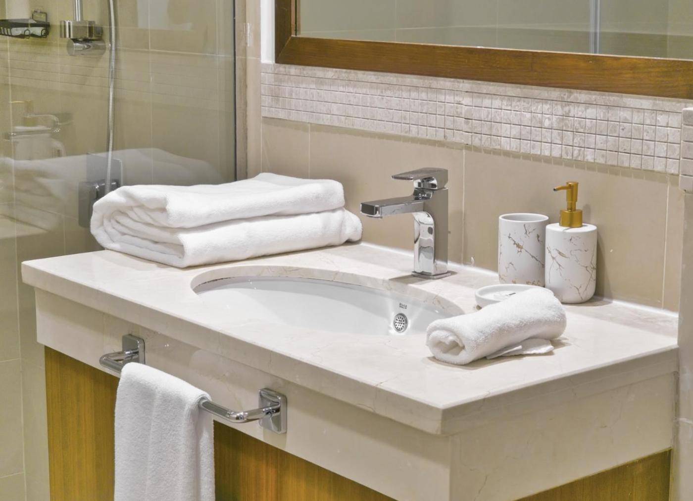Three-Bedroom Premium Apartment with Balcony. The private pool and sauna are the special features of this apartment. Featuring 3 bedrooms and 3 bathrooms, this spacious apartment offers a living room and terraceyou can relax. The apartments kitchen is available for cooking and storing food. This apartment features air conditioning, a washing machine, a flat-screen TV and a balcony. The unit has 3 beds.