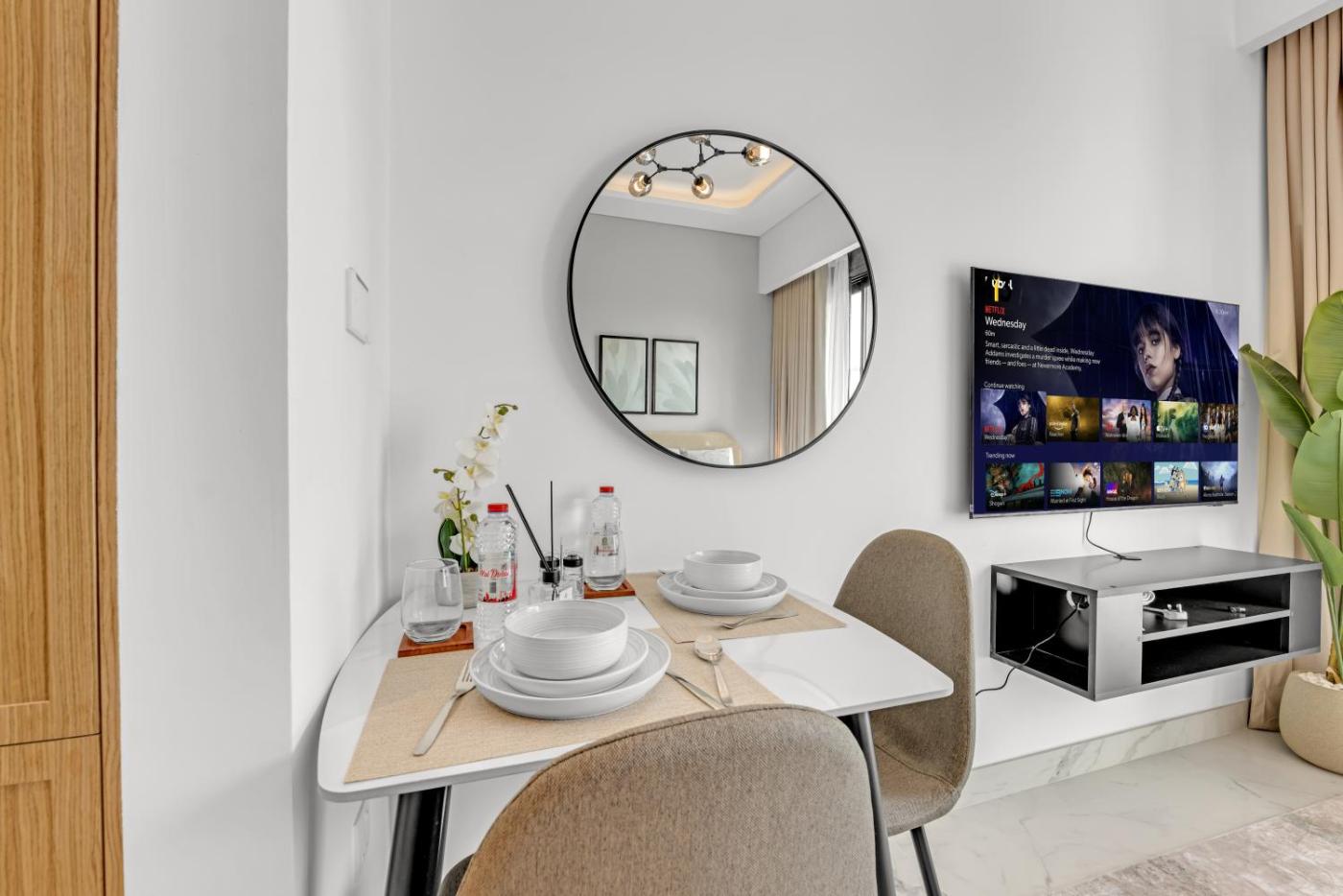 Located in Dubai, Chic Dubai Retreat at Azizi Riviera 65 provides accommodation with private pool, free WiFi and free private parking for guests who drive. The air-conditioned accommodation is 10 km from The Dubai Fountain. The property is non-smoking and is situated 10 km from Dubai Mall.