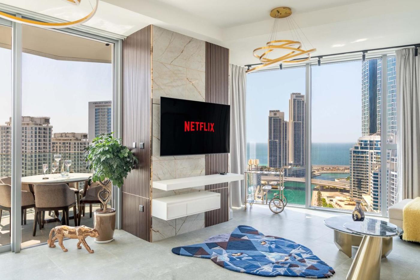 Located in Dubai, near Marina Beach and The Walk at JBR, Deluxe Marina View 2BR - Stella Maris Retreat is a recently renovated property, featuring, an outdoor swimming pool and shared lounge. This property offers access to a balcony, a pool table, free private parking and free WiFi. The accommodation provides a 24-hour front desk, a lift and luggage storage for guests.