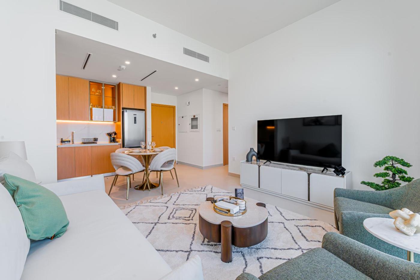 One-Bedroom Apartment. The private pool is the special feature of this apartment. Meals can be prepared in the well-fitted kitchen, which comes with a stovetop, a refrigerator, kitchenware and an oven. The spacious apartment provides air conditioning, a washing machine, a dining area, a wardrobe and a flat-screen TV. The unit offers 1 bed.