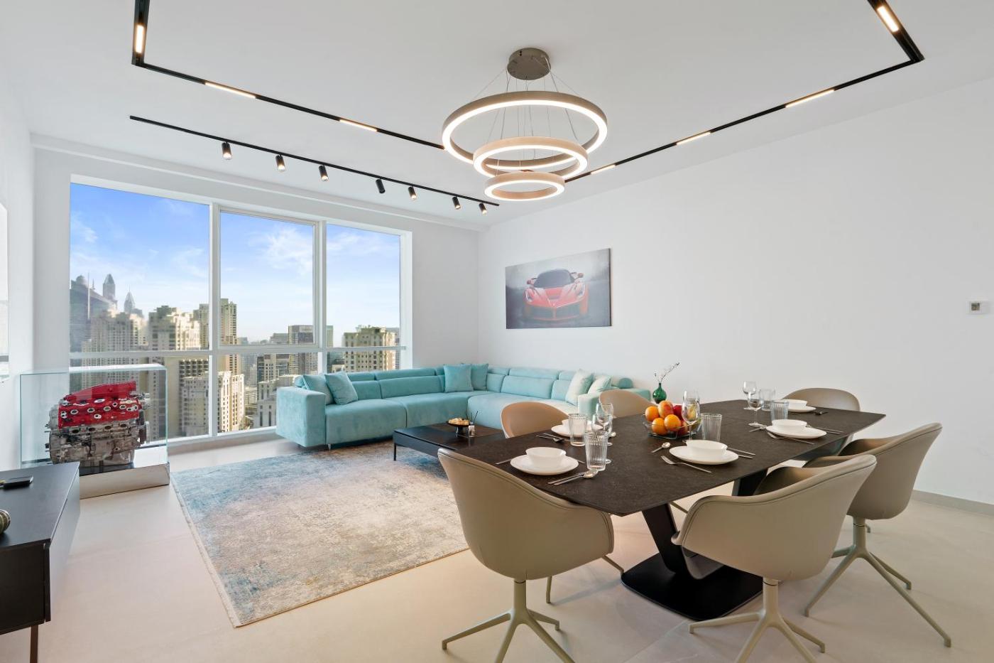 Offering a private beach area and sea view, Ferrari Inspired Modern 3BHK with maids room and Full Sea View is situated in Dubai, 700 metres from Hidden Beach and less than 1 km from The Walk at JBR. This beachfront property offers access to free WiFi and free private parking. The accommodation features a 24-hour front desk and a lift for guests.