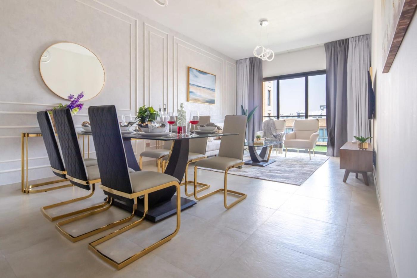 Located in Dubai, 11 km from Mall of the Emirates and 11 km from Dubai Autodrome, Frank Porter - Eleganz 5 provides air-conditioned accommodation with a balcony and free WiFi. The property is around 13 km from The Montgomery, Dubai, 15 km from Burj Al Arab Tower and 15 km from The Walk at JBR. The apartment features parking on-site, an outdoor swimming pool and a lift.