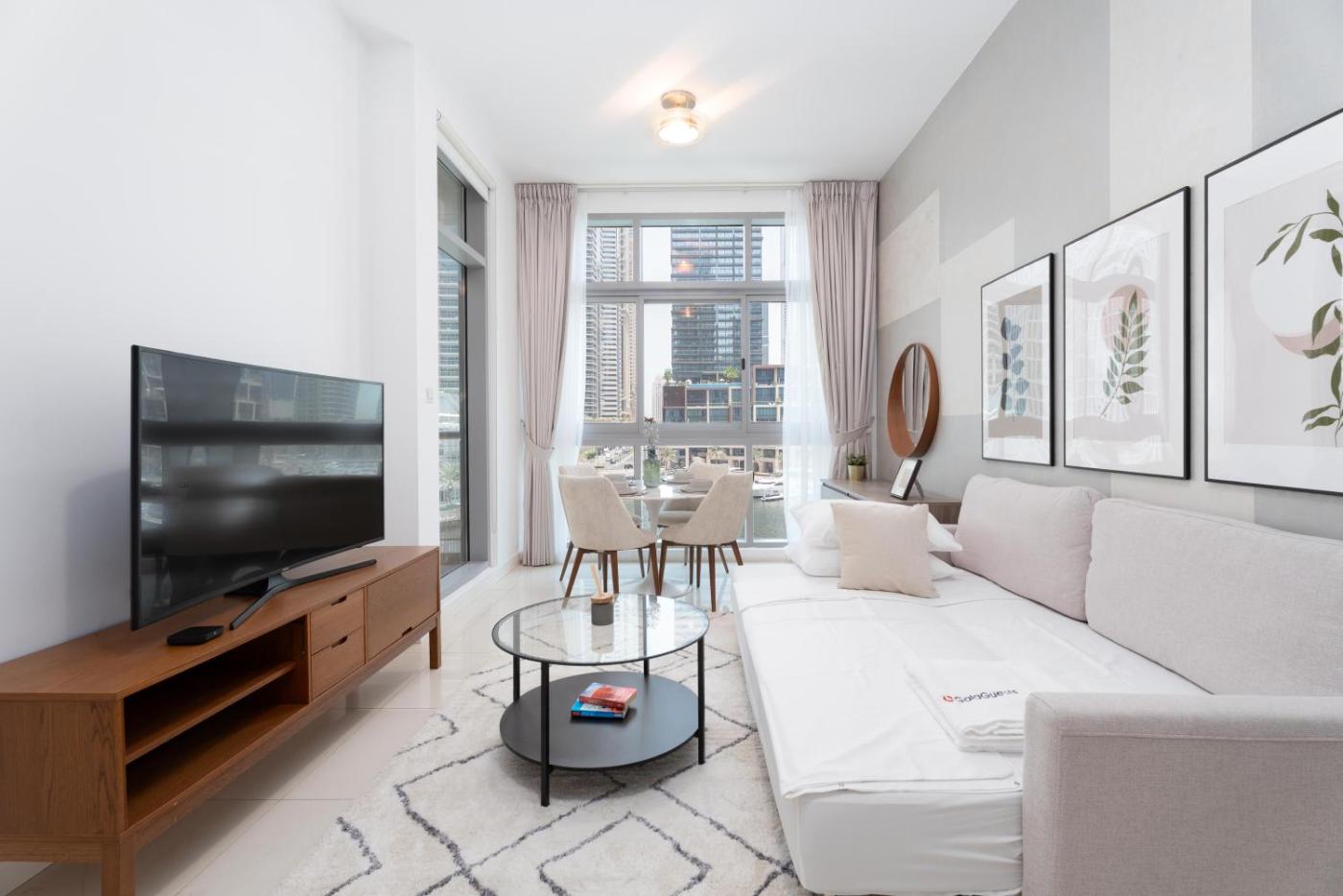 In the Dubai Marina district of Dubai, close to Marina Beach, Gala Guests - Iris Blue Luxe Living Collection features pool with a view and a washing machine. This property offers access to a balcony and free private parking. The apartment provides lake views, a sun terrace, a 24-hour front desk, and free WiFi is available throughout the property.