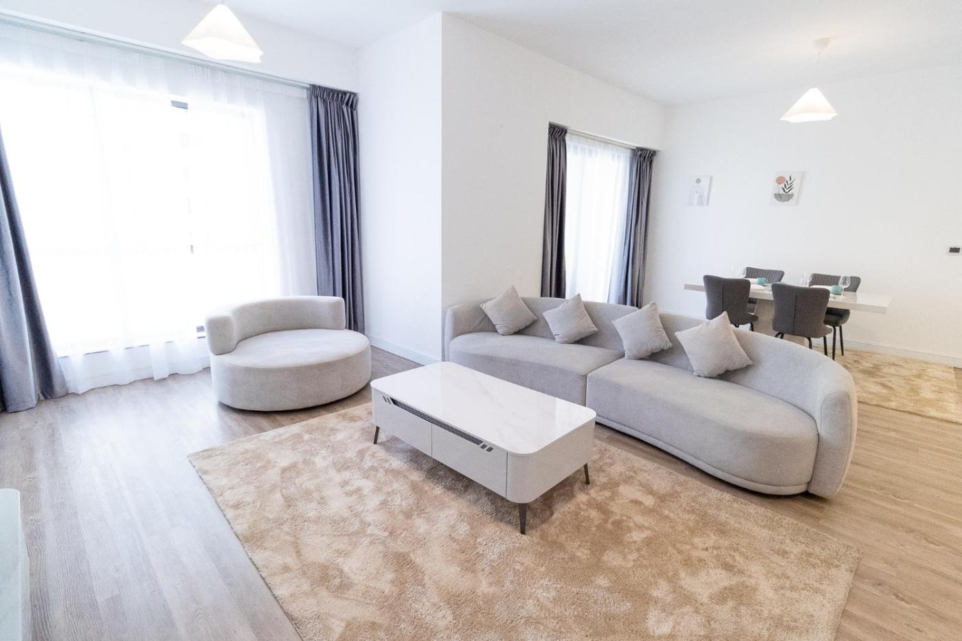 Two-Bedroom Deluxe Apartment with Balcony. Boasting 2 bedrooms and 2 bathrooms with a shower, this spacious apartment has a seating area and private poolyou can relax. Guests can make meals in the kitchen that is fitted with a stovetop, a refrigerator, kitchenware and an oven. The air-conditioned apartment offers a flat-screen TV, a washing machine, a tea and coffee maker, a dining area as well as city views. The unit offers 3 beds.