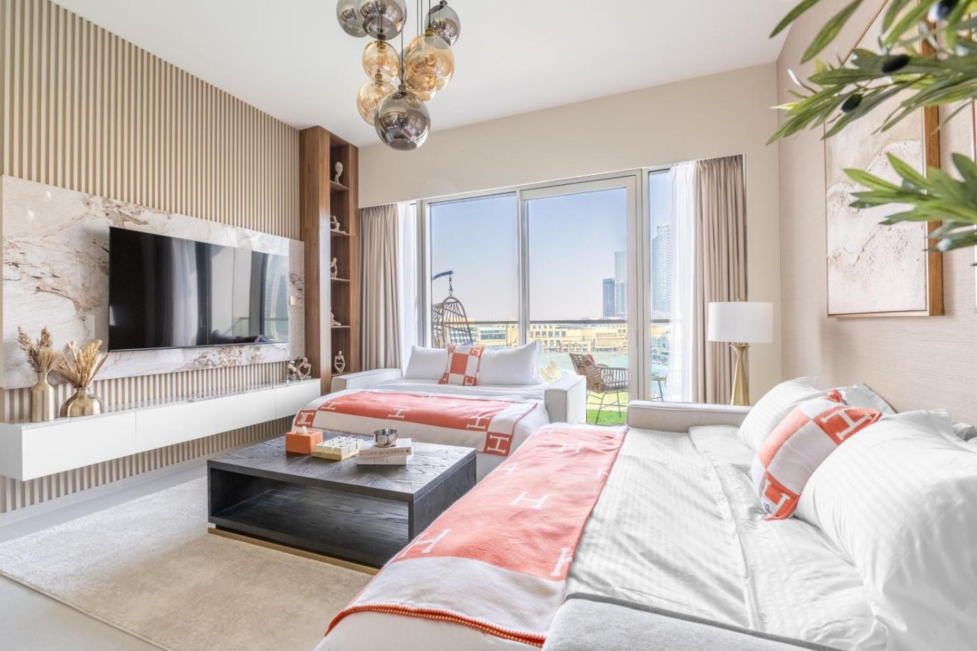 Hermes-Style 2BR, Full Burj Khalifa View - Infinity Pool - Full Fountain View - Dubaj