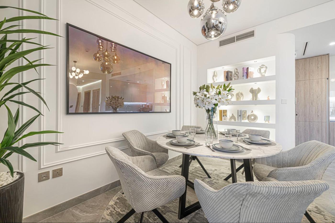 The Dubai Fountain is 2.6 km from High Rise Luxe Apartments overlooking Burj Khalifa at Peninsula One, 8 Mins from Dubai mall, while Dubai Mall is 3 km away. Dubai International Airport is 14 km from the property.
