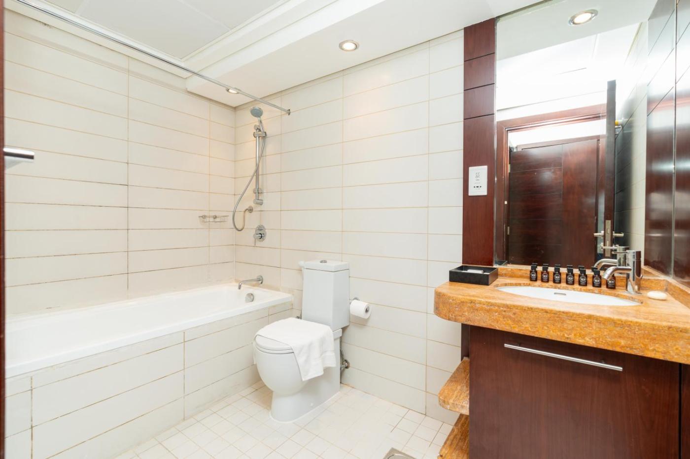 One-Bedroom Apartment. This apartments special feature is the hot tub. This spacious apartment consists of 1 living room, 1 separate bedroom and 2 bathrooms with a bath and free toiletries. The air-conditioned apartment provides a TV with satellite channels, a washing machine, a tea and coffee maker, a seating area as well as city views. The unit offers 2 beds.