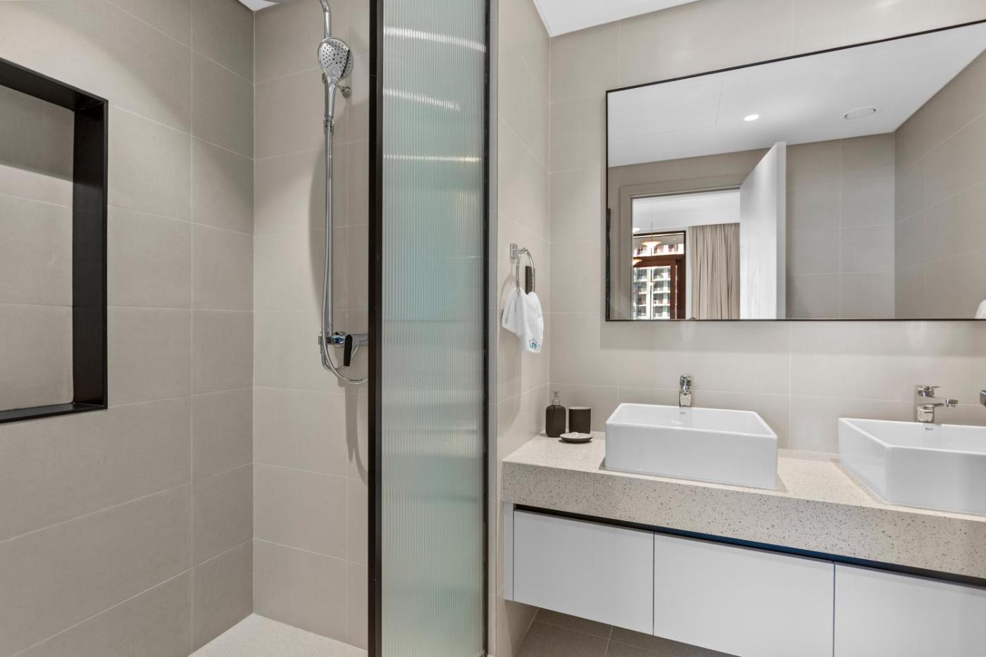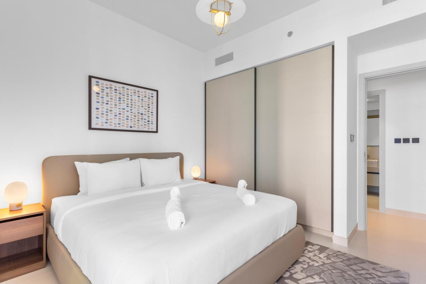 Located in Dubai, 4.1 km from The Walk at JBR and 5.8 km from The Montgomery, Dubai, Luxurious Living in the heart of Emaar Beachfront offers a private beach area and air conditioning. This beachfront property offers access to a balcony, free private parking and free WiFi. The accommodation provides a 24-hour front desk and a lift for guests.