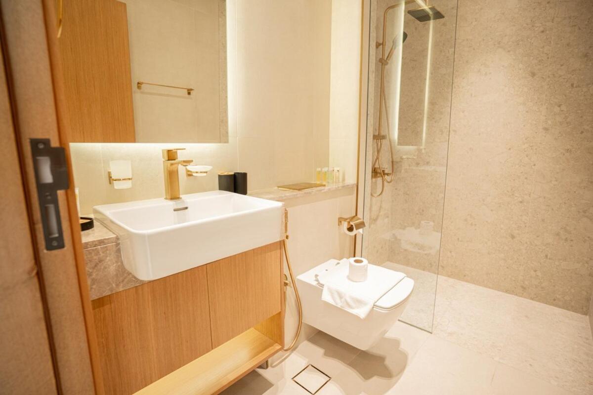 One-Bedroom Apartment with Balcony. This spacious apartment comprises 1 living room, 1 separate bedroom and 2 bathrooms with a walk-in shower and free toiletries. Guests can make meals in the kitchen that is equipped with a stovetop, a refrigerator, an oven and a microwave. This air-conditioned apartment is comprised of a dining area, a flat-screen TV with streaming services a washing machine and a balcony. The unit offers 2 beds.