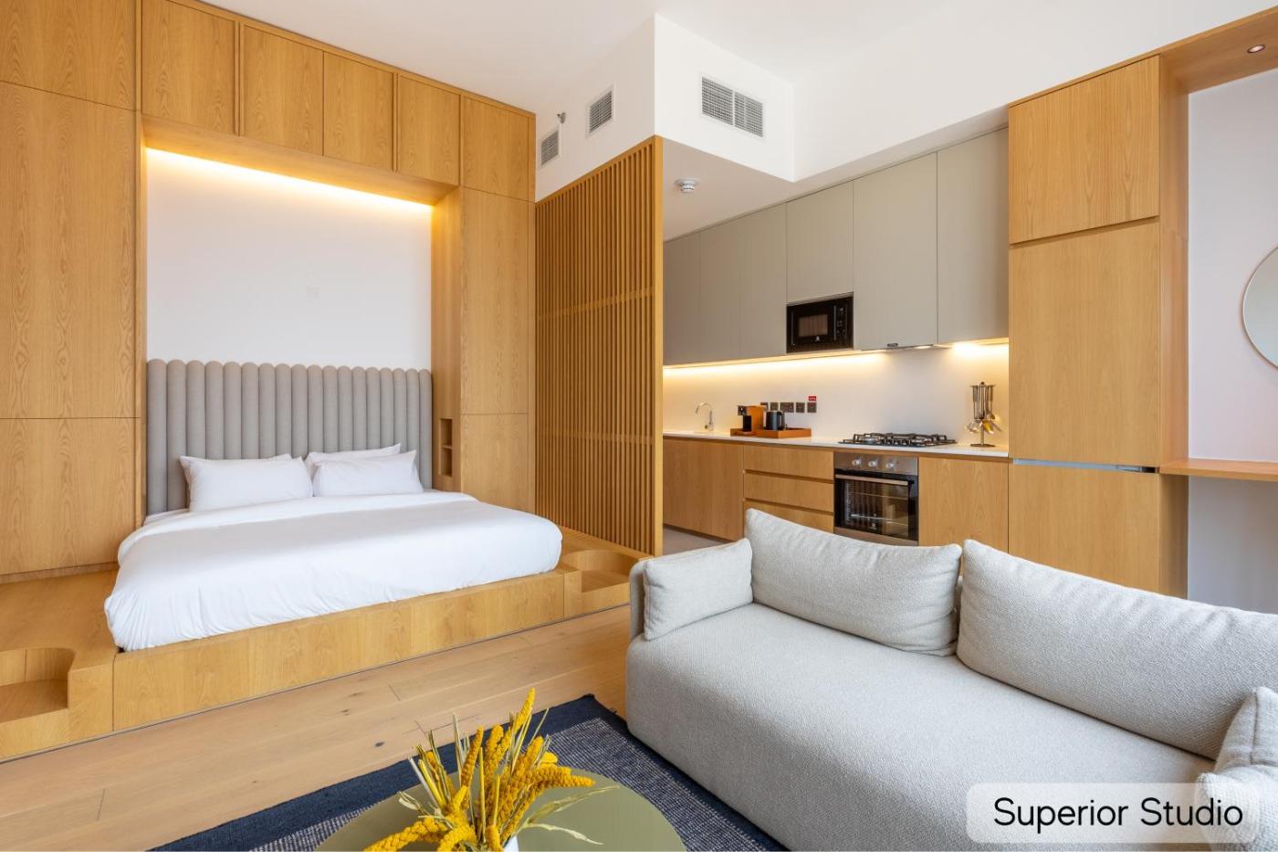 Superior Studio. Meals can be prepared in the kitchen, which features a stovetop, a refrigerator, a dishwasher and kitchenware. The spacious studio features air conditioning, a washing machine, a balcony with city views as well as a private bathroom boasting a shower. The unit has 1 bed. ;