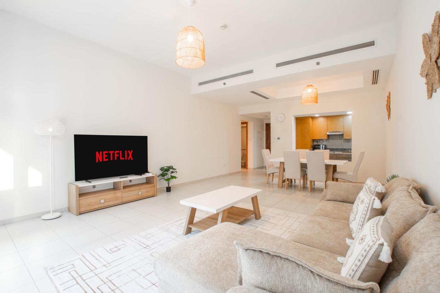 One-Bedroom Apartment. The apartments kitchen is available for cooking and storing food. The spacious apartment offers air conditioning, a washing machine and a balcony. The unit has 1 bed.
