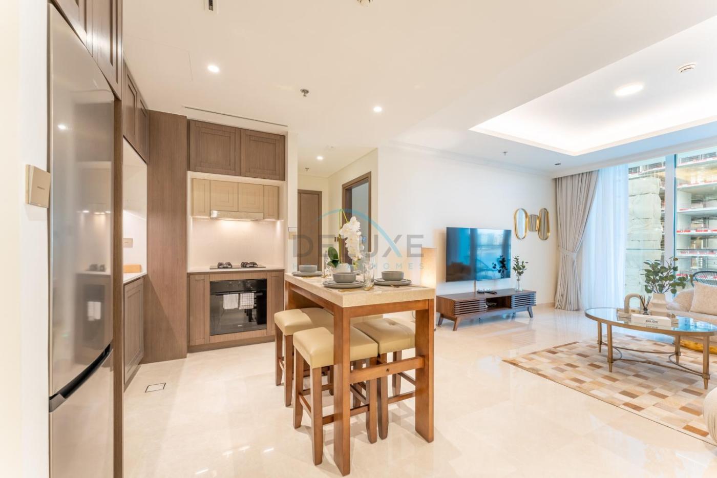 Partial Marina and City Views 1BR, Close to JBR Beach, Palace Beach Residence Tower 2, Emaar Beachfront, Dubai Marina by Deluxe Holiday Homes is located in the Palm Jumeirah district of Dubai, 6 km from The Montgomery, Dubai, 10 km from Burj Al Arab Tower and 10 km from Mall of the Emirates. The air-conditioned accommodation is 4.3 km from The Walk at JBR, and guests can benefit from on-site private parking and complimentary WiFi. The apartment features an outdoor swimming pool and a lift.