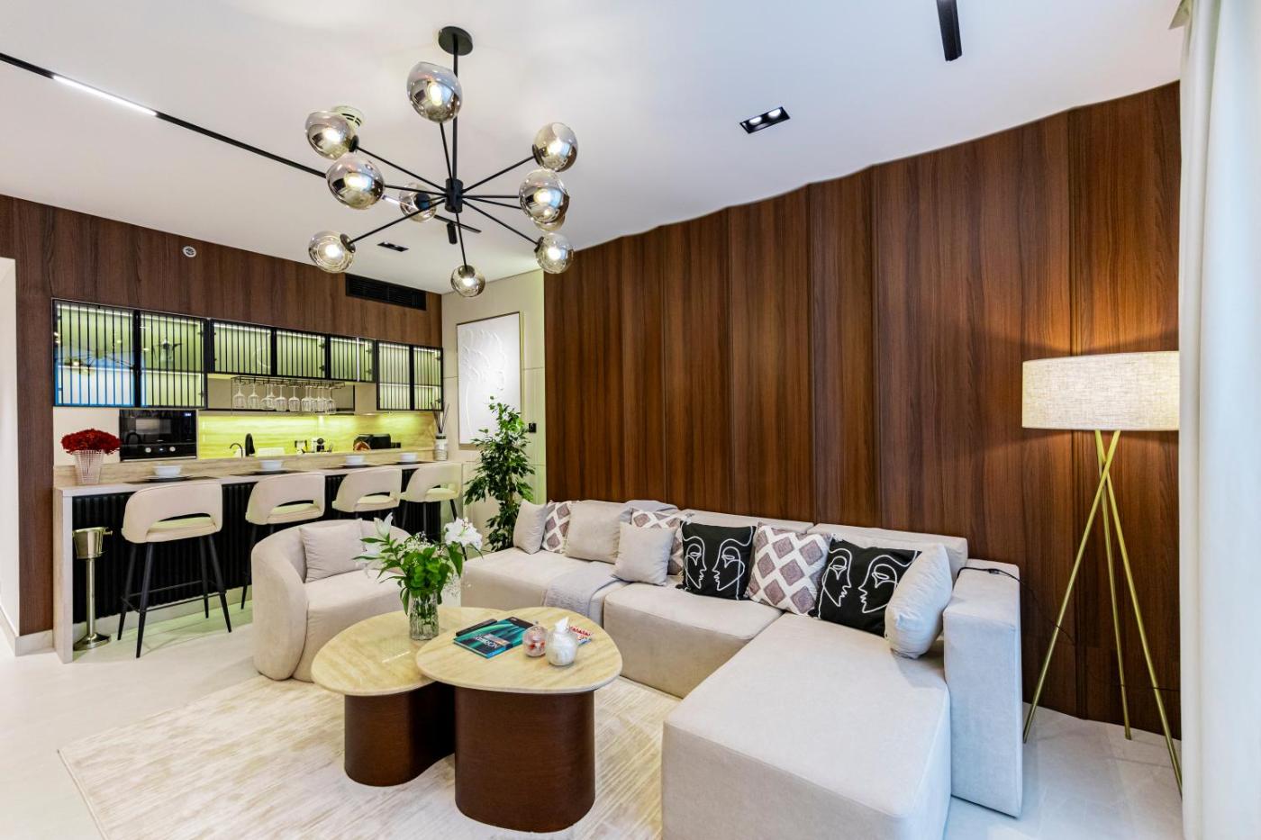 One-Bedroom Apartment. Guests will have a special experience as the apartment features a private pool. The spacious apartment features 1 bedroom and 1 bathroom with a walk-in shower and free toiletries. The fully equipped kitchen has a stovetop, a refrigerator, a dishwasher and kitchenware. The air-conditioned apartment provides a flat-screen TV with satellite channels, a washing machine, a minibar, a tea and coffee maker as well as garden views. The unit offers 1 bed.