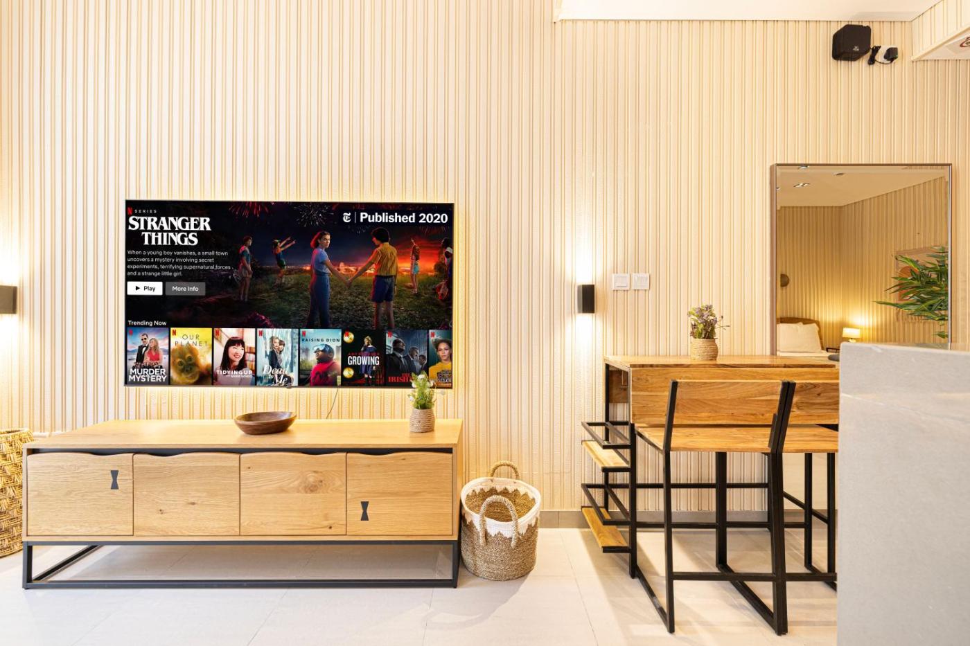 Studio Apartment. This spacious apartment comprises 1 living room, 1 separate bedroom and 1 bathroom with a shower and free toiletries. Meals can be prepared in the kitchen, which comes with a stovetop, a refrigerator, kitchenware and a microwave. The air-conditioned apartment provides a flat-screen TV with streaming services, a washing machine, a tea and coffee maker, a seating area as well as garden views. The unit offers 2 beds.
